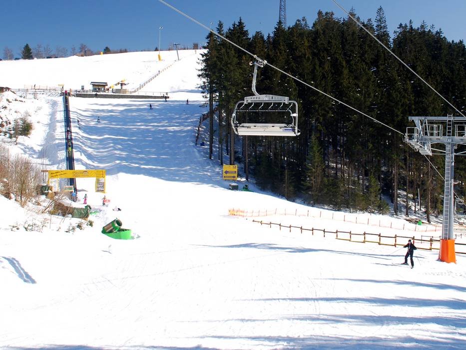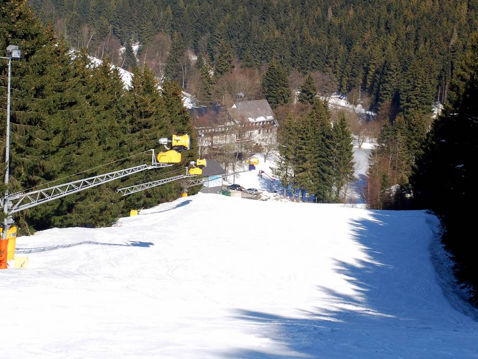 Avec une pente allant jusqu'à 50 %, c'est l'une des rares pistes du Sauerland où même les skieurs expérimentés sentiront leurs cuisses. - Descente St. Georg-Schanze · Longueur 0,2 km · Dénivelé 72 m