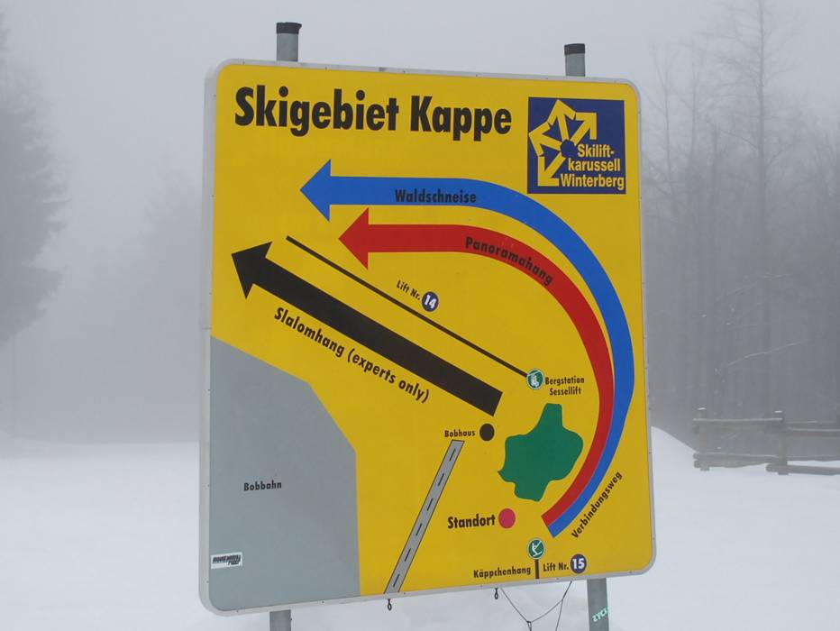 Indications de directions (plans, panneaux informatifs, signalisation) et sécurité sur le domaine skiable Winterberg (Skiliftkarussell)