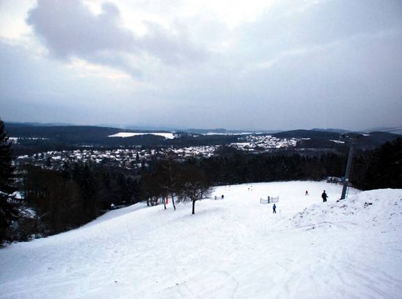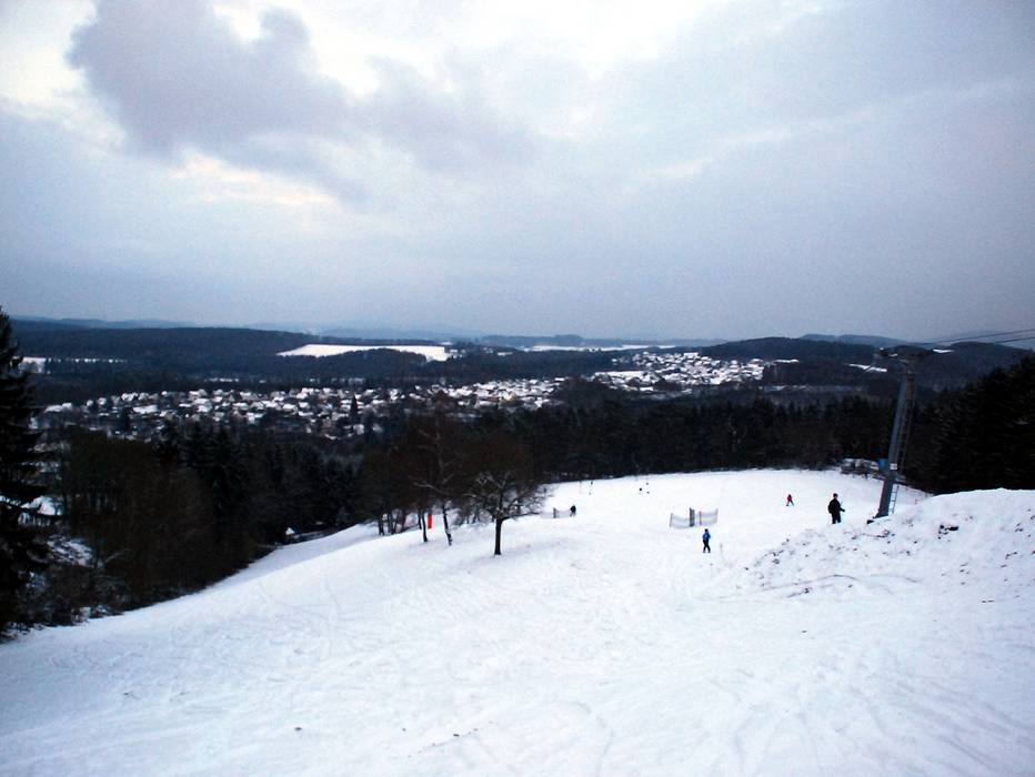 Le domaine skiable n’a certes que la taille d’un grand hall de ski, mais il séduit par un terrain relativement varié et la vue ne s’arrête pas à une photo sur le mur du hall, elle s’étend loin au-dessus de la vallée de la Sieg.