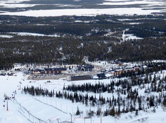 Deux villages traditionnels se trouvent à proximité du domaine skiable. Äkäslompolo est situé à 4 km sur le versant nord, tandis que Ylläsjärvi se trouve également à environ 4 km sur le versant sud. Un quartier de Ylläsjärvi est directement situé au pied du domaine skiable (Sport Resort Ylläs) et propose de nombreux hébergements de différentes catégories directement au bord des pistes.