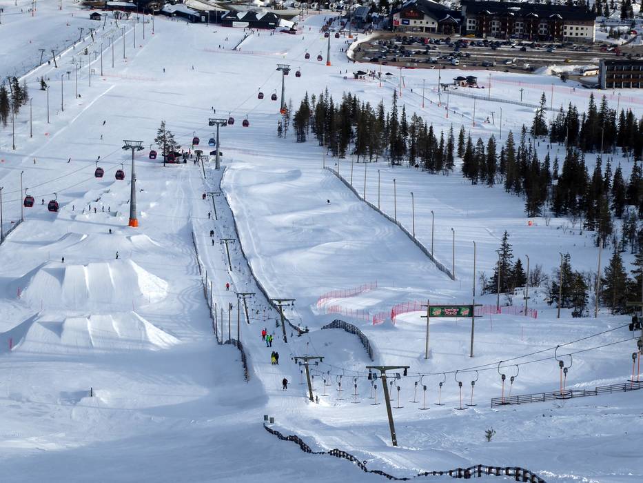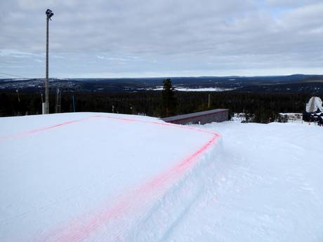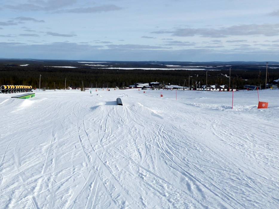 Dans la station de ski Ylläs, plusieurs snowparks attendent les freestylers et snowboarders de chaque côté du sommet Yllästunturi, dans les zones de vallée.