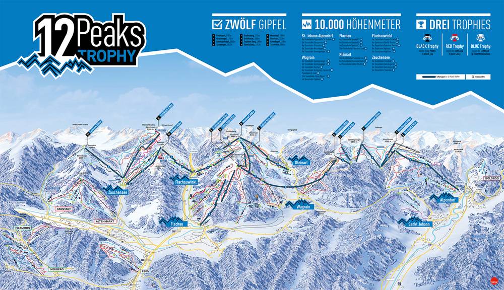 Le défi sportif au cœur de Ski amadéLa 12 Peaks Trophy vous emmène sur 12 sommets et à travers 5 vallées de Zauchensee Alpendorf. Relevez le défi et parcourez au total 10 000 mètres de dénivelé !