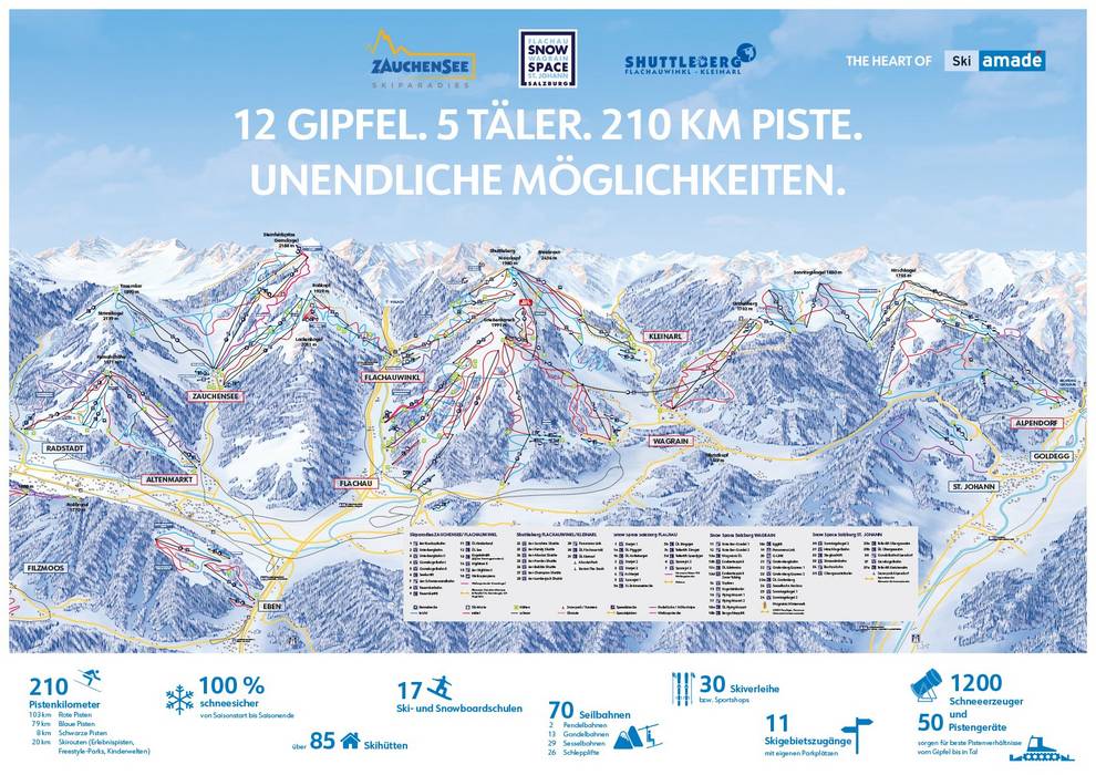 12 sommets, 5 vallées, des possibilités infiniesLa nouvelle télécabine Panorama-Link relie les domaines skiables de Zauchensee/Flachauwinkl/Kleinarl avec le Snow Space Salzburg. Ainsi naît l’une des plus grandes et des plus variées régions de sports d’hiver d’Europe, au cœur de Ski amadé : avec 210 kilomètres de pistes, 70 remontées mécaniques, des snowparks branchés et d’innombrables spots de freeride. Pour la première fois, il est possible de faire la navette à ski d’Alpendorf jusqu’à Zauchensee (skibus entre Flachauwinkl & Shuttleberg) !