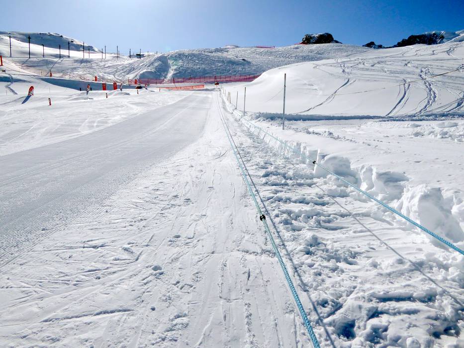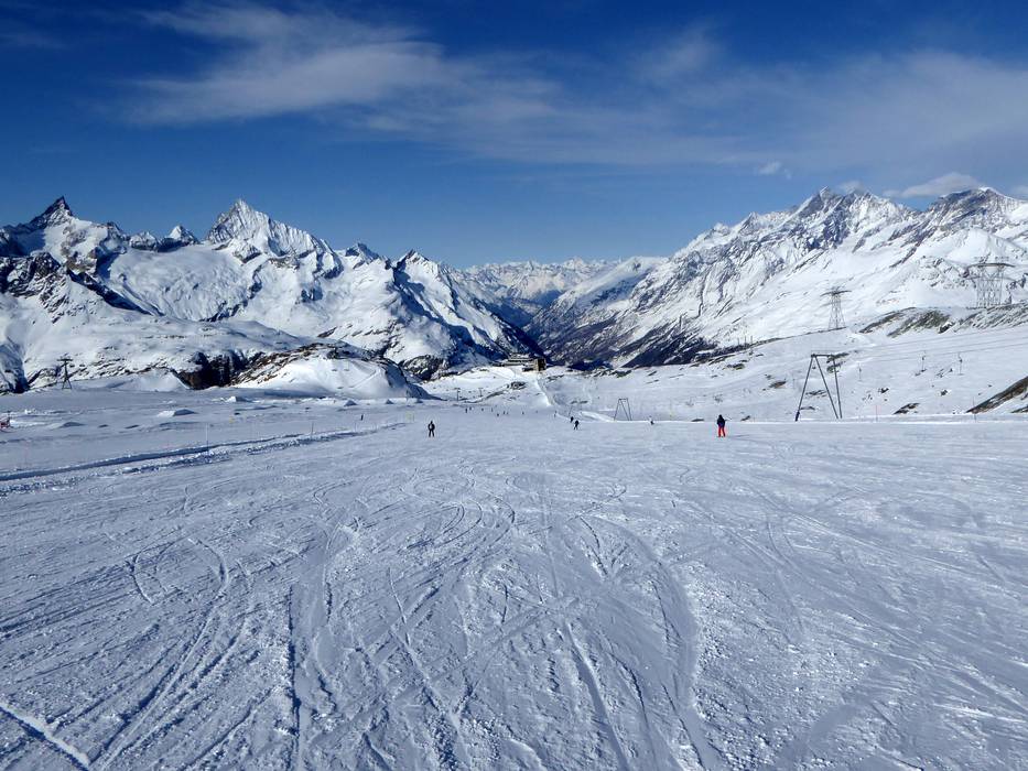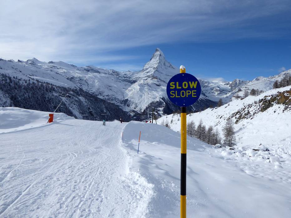 À Zermatt, les débutants peuvent explorer de nombreux points du domaine skiable sur des pistes faciles. Cependant, il n’est malheureusement pas possible de parcourir l’ensemble du domaine uniquement sur des pistes faciles. À certaines stations, il existe des parcs pour débutants et des Slow Slopes. Le Wolli Anfängerpark Sunnegga est idéal pour les premiers virages. On y trouve plusieurs tapis roulants et, une fois à l’aise sur les skis, il est possible de descendre la Slow Slope vers Eja ou la Slow Slope Standard. Au Gornergrat, il y a quelques pistes faciles et larges, une Slow Slope ainsi qu’un grand parc pour débutants au Riffelberg. Dans ce parc, plusieurs tapis roulants et téléskis à corde sont disponibles. Un autre parc pour débutants avec un téléski d’entraînement se trouve au Trockenen Steg. Ici, les débutants peuvent également découvrir une piste de glacier très facile et large. Il n’existe pas de descente facile jusqu’à Zermatt, les débutants doivent donc redescendre en vallée par les remontées mécaniques.