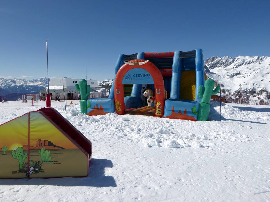 L'espace enfants se trouve à Salette, à la station supérieure de la télécabine de Valtournenche. En plus du grand terrain de jeux “Wild West Zone”, plusieurs tapis roulants sont à disposition pour l'entraînement. L'ensemble de la zone est très ensoleillée et bénéficie d'un bon enneigement. Une piste de snowtubing offre encore plus de divertissement.
