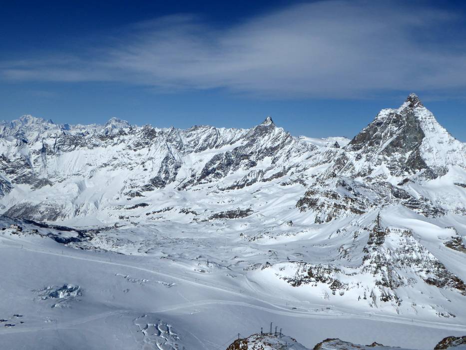Le domaine skiable transfrontalier au pied du Cervin est le plus haut domaine skiable des Alpes et compte parmi les plus grands domaines skiables du monde. En Suisse, le domaine commence à Zermatt, en Italie à Breuil-Cervinia et Valtournenche. Les pistes s’étendent en Suisse du Rothorn, en passant par le Hohtälli, le Gornergrat jusqu’au Klein Matterhorn (3883 m). En Italie, les pistes vont du Theodulpass (Colle del Theodulo) aux Cime Bianchi, jusqu’à Plan Maison et Salette. Toutes les pistes sont directement reliées entre elles. La partie suisse est un peu plus grande que la partie italienne. Sur le Theodulgletscher, on peut skier toute l’année.