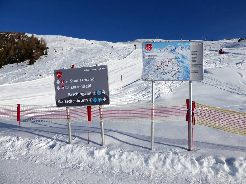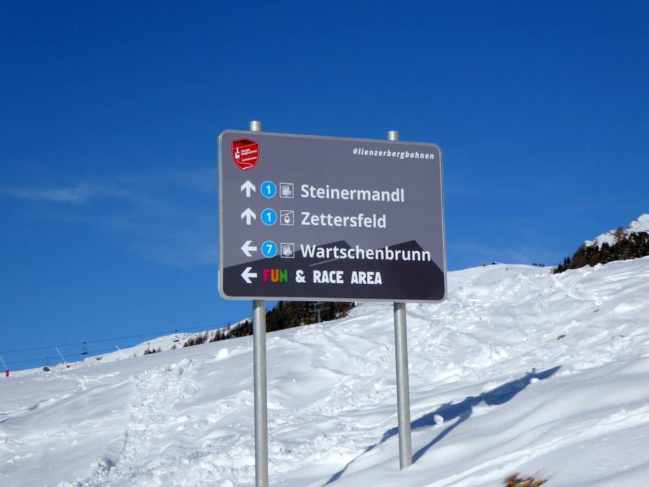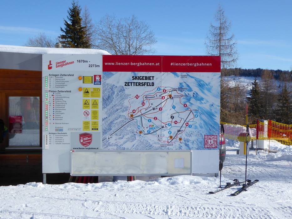 Indications de directions (plans, panneaux informatifs, signalisation) et sécurité sur le domaine skiable Zettersfeld – Lienz