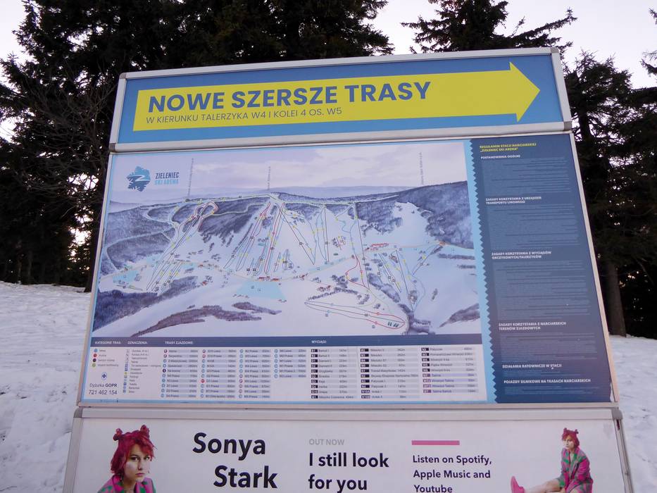 À tous les points importants du domaine skiable de Zieleniec, des plans des pistes clairs sont disponibles pour vous orienter. Les descentes sont en grande partie bien signalées, ce qui facilite la navigation dans la région. Les informations d’exploitation actuelles, telles que les remontées mécaniques et les pistes ouvertes, ne sont toutefois disponibles que sur le site web.