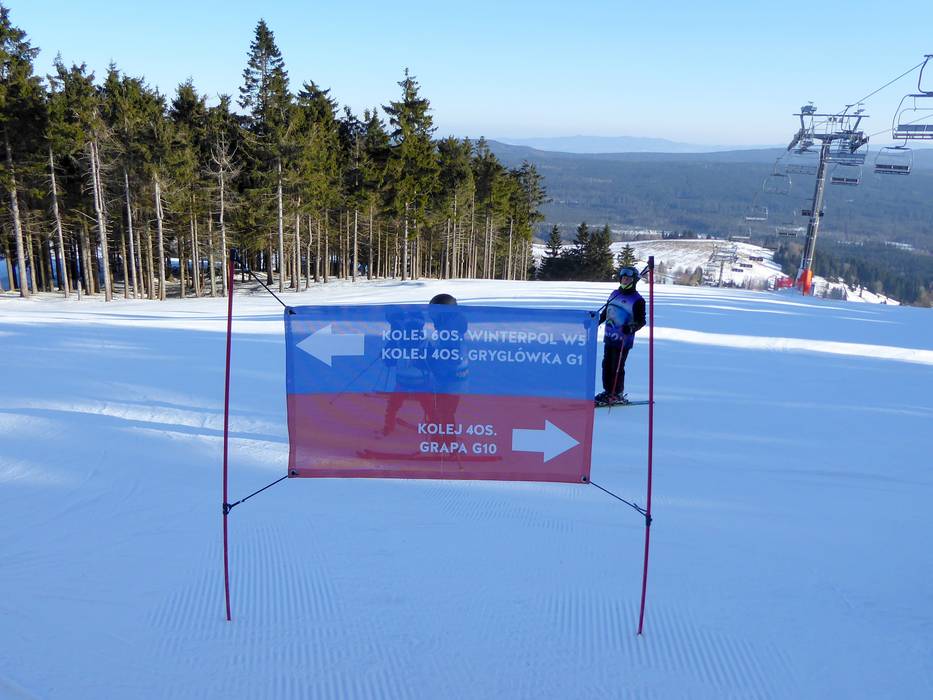 Indications de directions (plans, panneaux informatifs, signalisation) et sécurité sur le domaine skiable Zieleniec