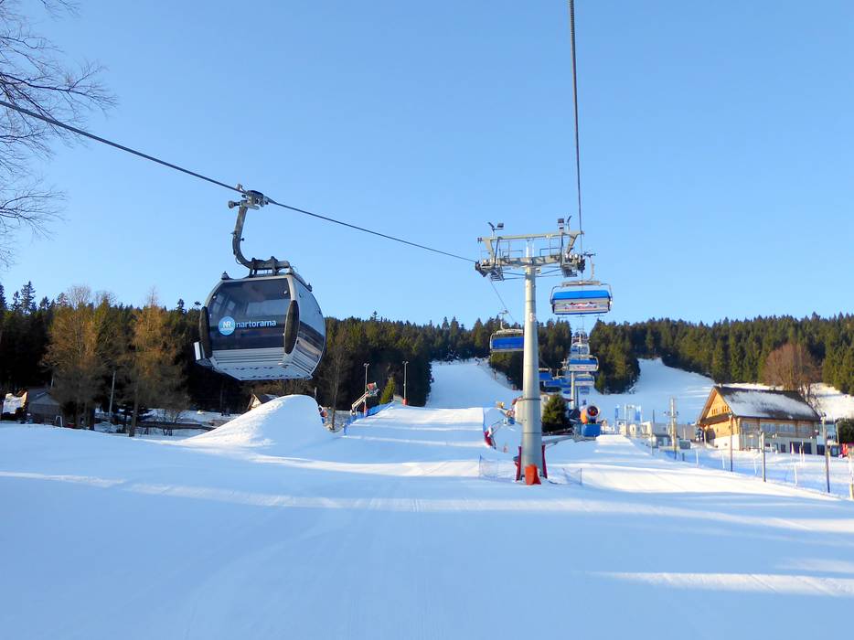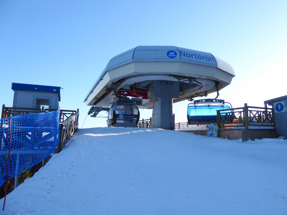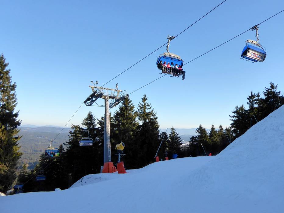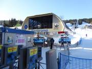 Téléphérique monocâble composé de sièges à 6 places et de cabines à 8 places avec sièges chauffants