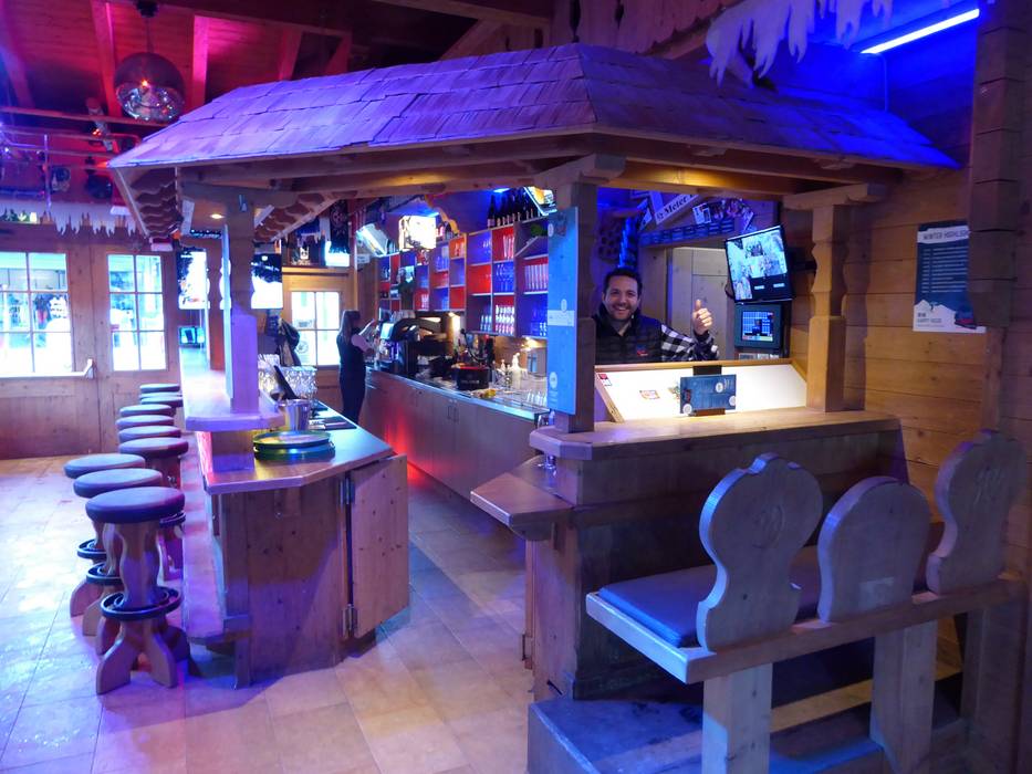 Dans le petit chalet convivial, une ambiance festive avec de la musique après-ski vous attend.