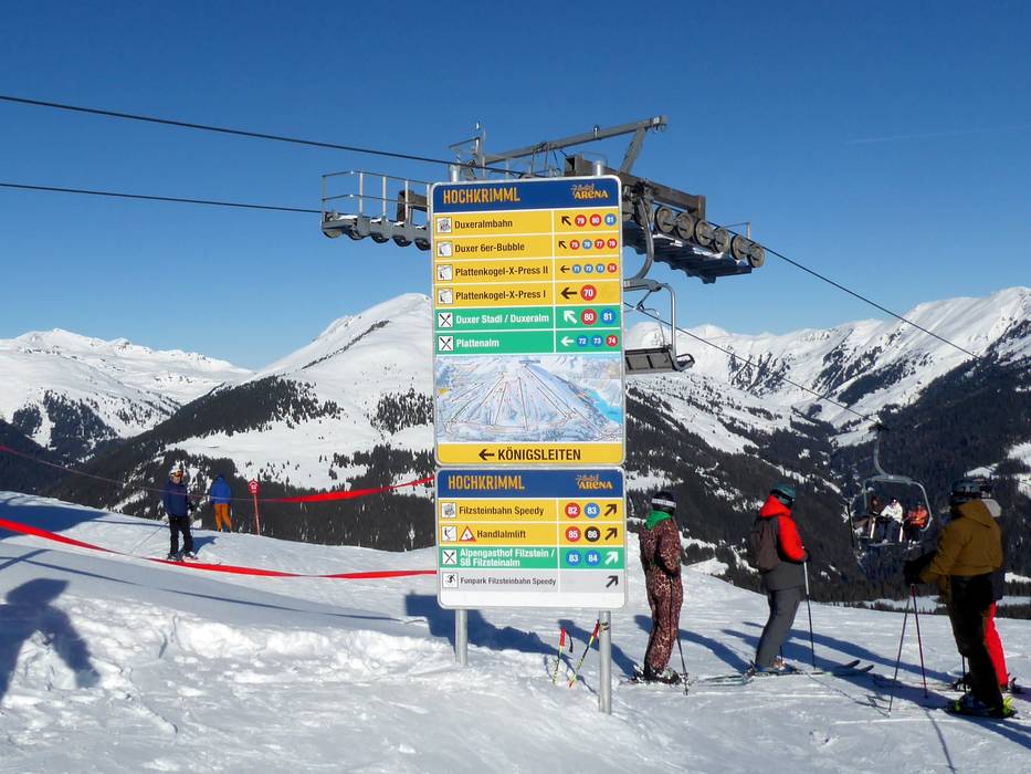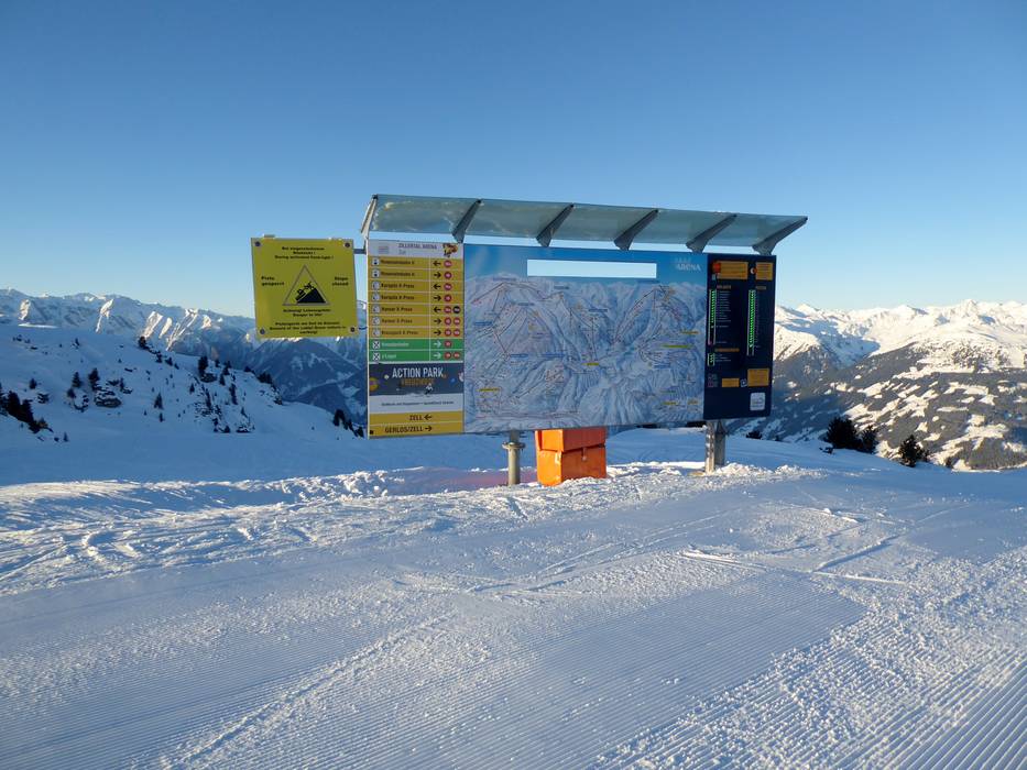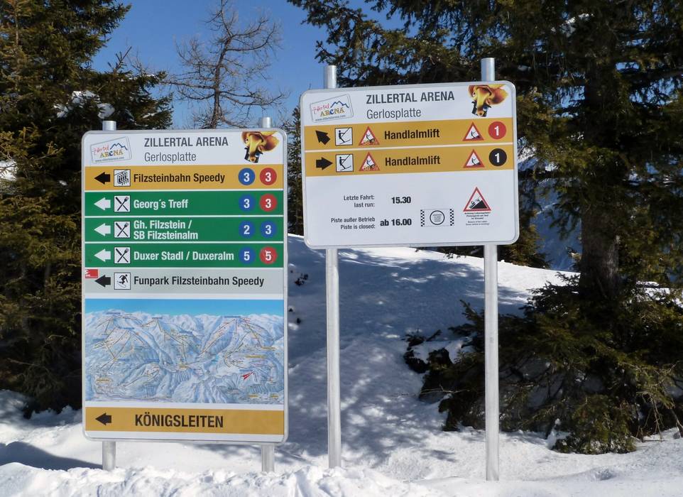 Indications de directions (plans, panneaux informatifs, signalisation) et sécurité sur le domaine skiable Zillertal Arena – Zell am Ziller/Gerlos/Königsleiten/Hochkrimml