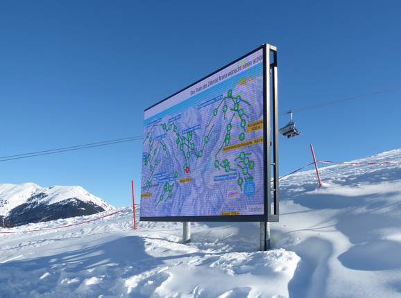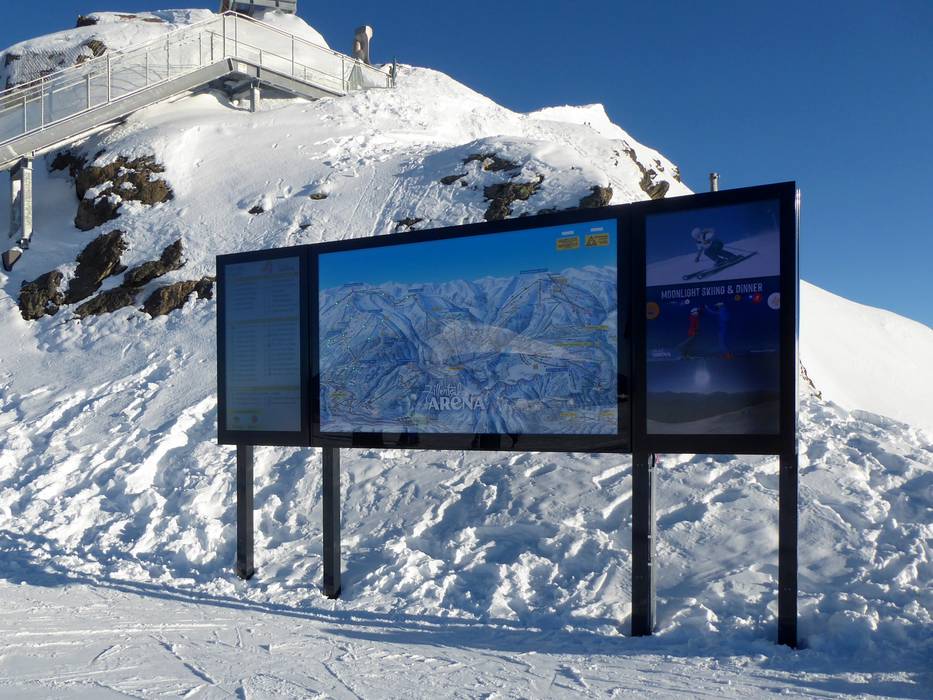 Dans l'ensemble du domaine skiable, la signalisation est excellente avec des plans des pistes à chaque intersection et des informations sur la façon de rejoindre les principales localités. Des panneaux numériques affichant le statut en temps réel facilitent grandement l’orientation. Les hotspots Wi-Fi sont clairement indiqués et la connexion fonctionne très bien.
