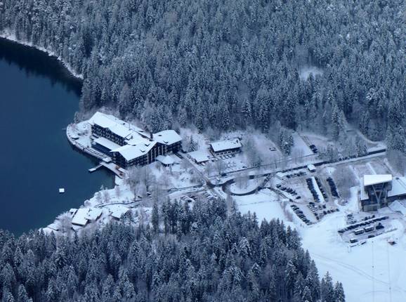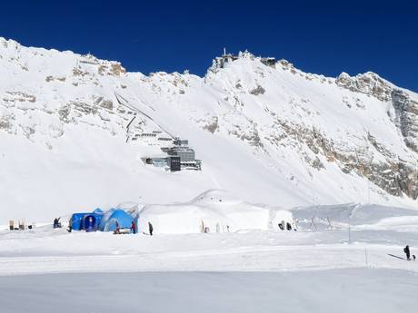 Au sommet de la Zugspitze, le village d'igloos propose une expérience unique : passer une nuit dans la neige. À côté de la station inférieure du téléphérique Zugspitze se trouve l’Eibsee-Hotel, un hôtel 4 étoiles situé au magnifique lac Eibsee. À la station inférieure du Tiroler Zugspitzbahn se trouve le Zugspitz Resort, un complexe hôtelier 4S étoiles. Les localités de Garmisch, Grainau et Ehrwald offrent des hébergements de toutes catégories.