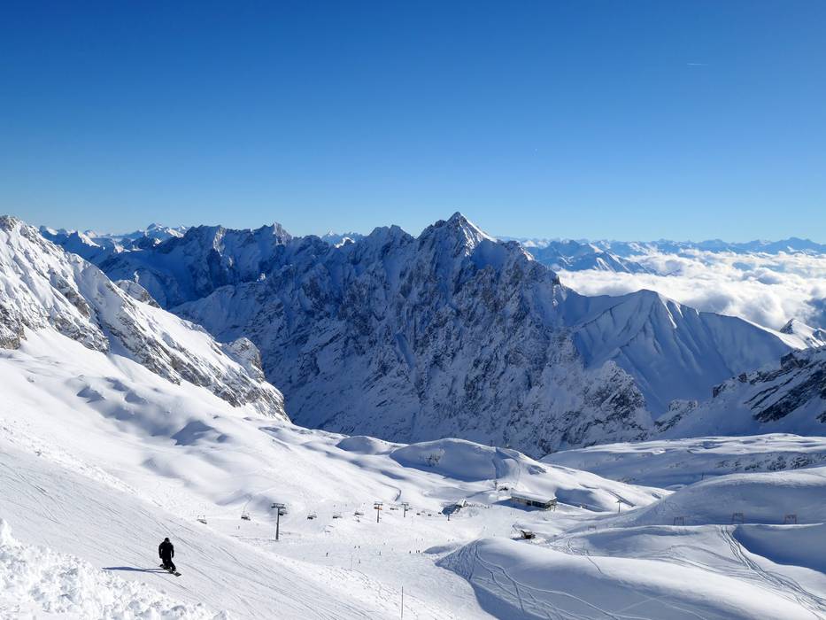 Sommet de la Zugspitze (2 962 m) Panorama avec 400 sommets dans 4 pays (vue sur 4… Domaine skiable Zugspitze Domaine skiable Zugspitze