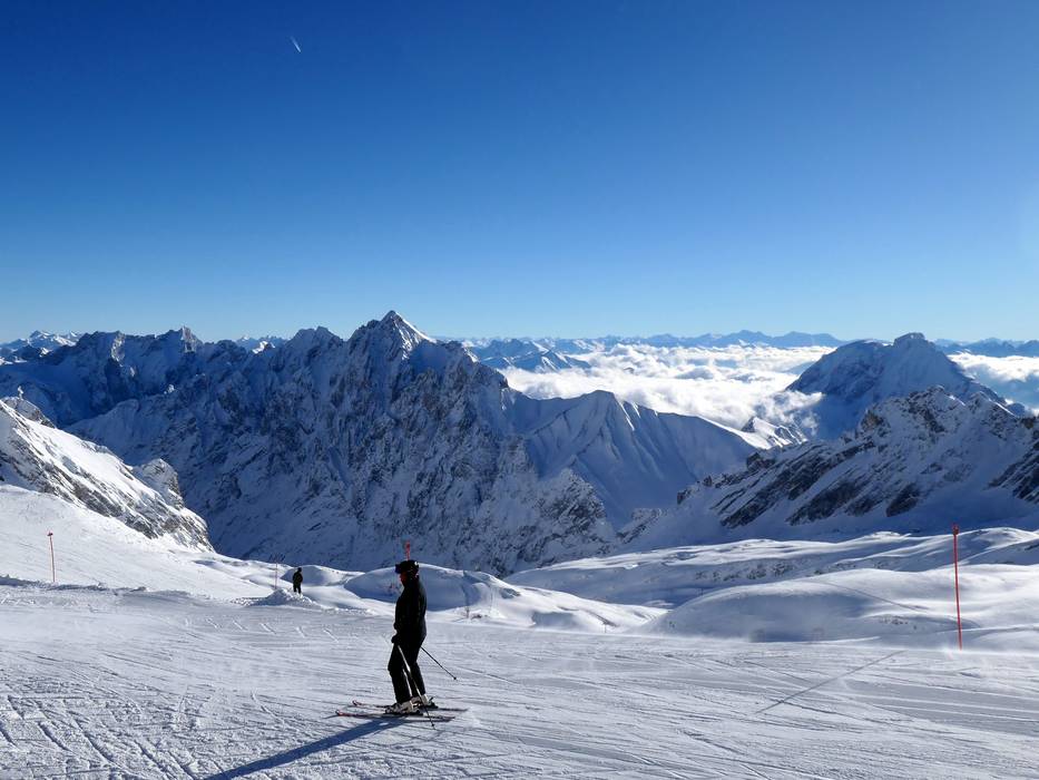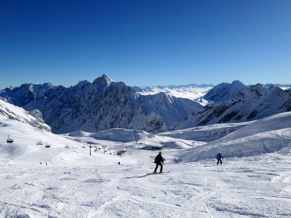 Dans le domaine skiable de la Zugspitze, des pistes faciles et de difficulté moyenne sont disponibles. Ce sont les pistes les plus hautes de toute l'Allemagne. Seules des descentes de difficulté moyenne mènent au Brunntal, tandis qu'au téléski Schneefernerkopf, seules des descentes faciles sont proposées. Toutes les autres zones offrent le choix. Il n'y a pas de descentes difficiles, mais de nombreux champs de poudreuse non sécurisés. Le panorama est magnifique.
