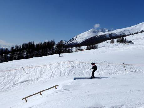 Le domaine skiable de Zuoz propose un petit snowpark avec funslope dans la zone de la vallée.