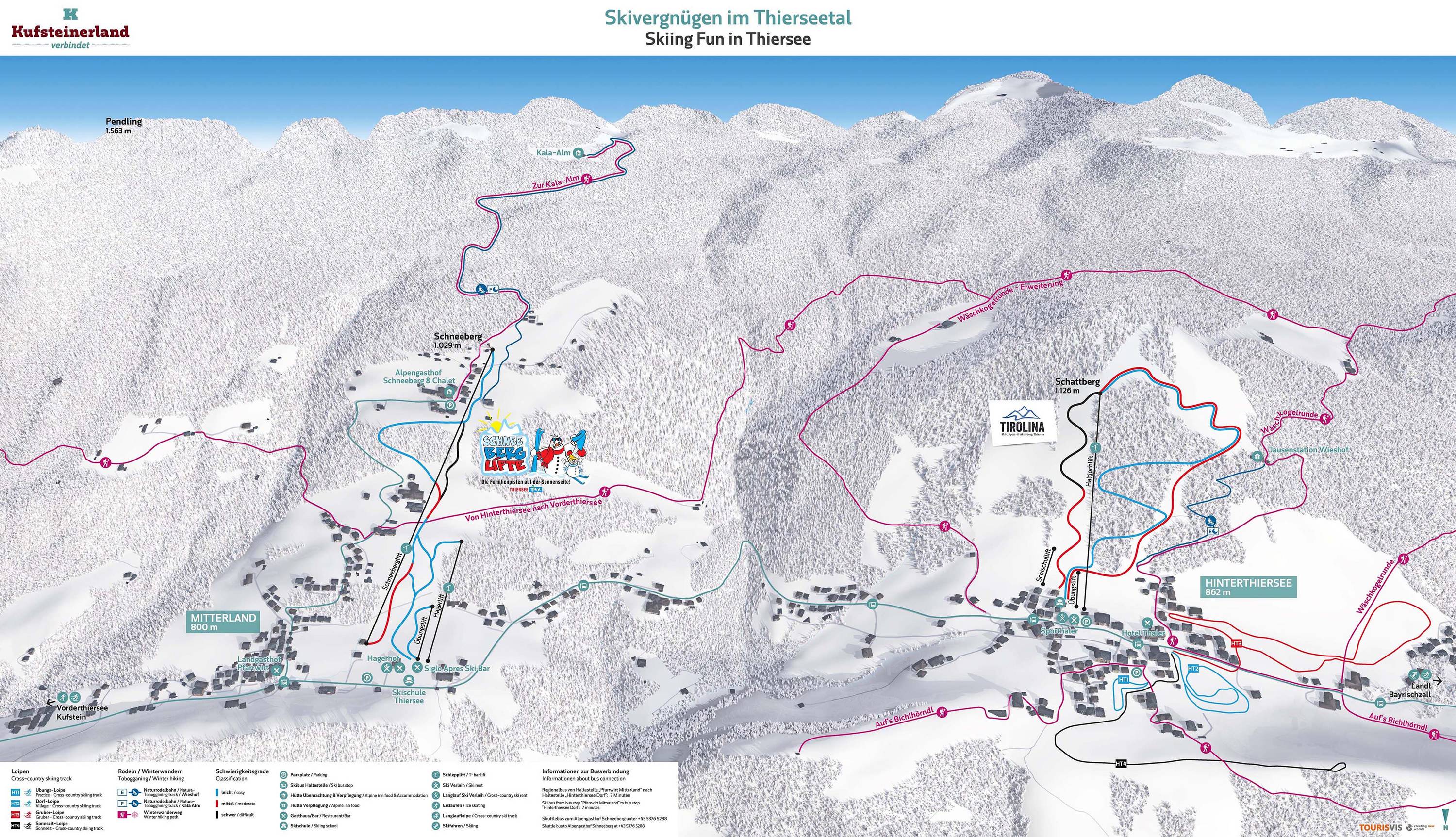 Dans la Thierseetal (vallée de Thiersee), les 2 domaines skiables suivants offrent un plan des pistes ou une carte panoramique.