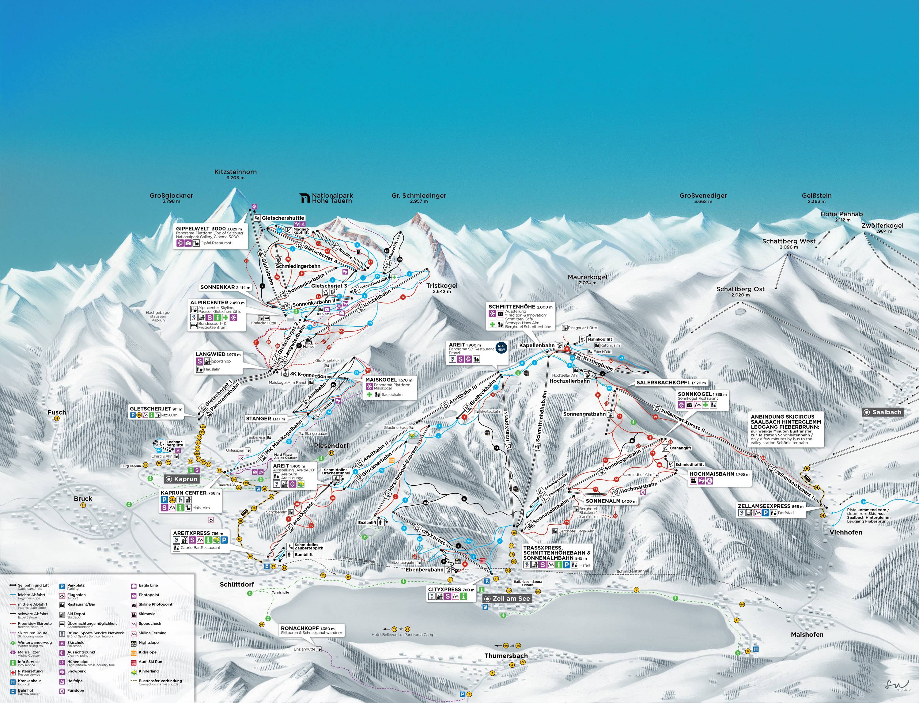 Liste et carte de tous les domaines skiables et leur plan des pistes à Zell am See-Kaprun