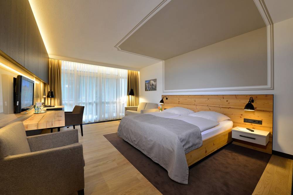 Laissez-vous emporter par la nuit qui tombe et réjouissez-vous d’un sommeil réparateur. Dans l’une de nos chambres exquises et confortables avec vue sur les montagnes environnantes, vous trouverez un repos tout en douceur. Sans avoir à compter les moutons. Promis.