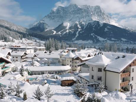 Pour les adultes, un espace spa exclusif leur est réservé avec de nombreux types de saunas. L’offre de soins et de massages est vaste et il y en a pour tous les goûts. La vue sur la Zugspitze depuis le centre de fitness panoramique est un excellent motivateur.