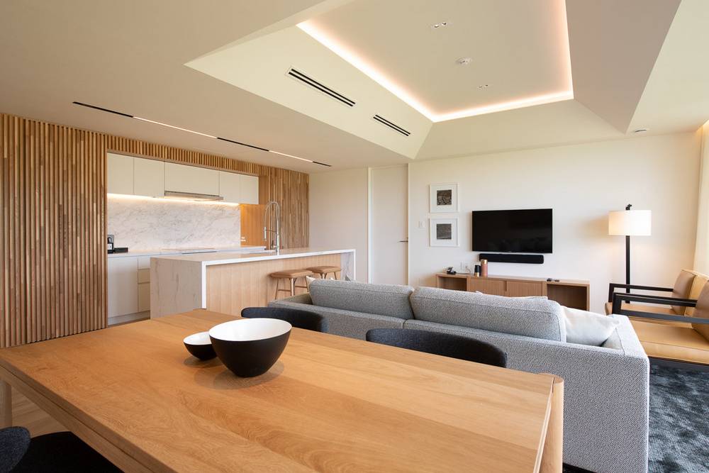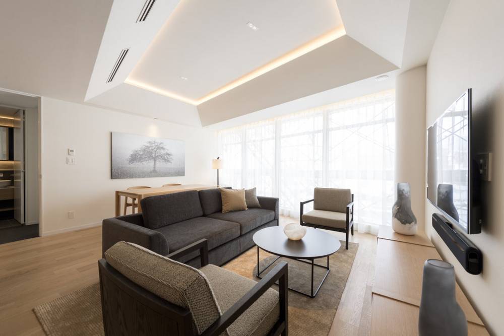 L’hôtel propose des studios, suites et penthouses haut de gamme et modernes. Grâce aux grandes baies vitrées, vous profitez d’une vue magnifique sur les montagnes environnantes. Un point fort est la vue sur le volcan Yōtei-zan. Les chambres sont très spacieuses et décorées avec beaucoup de bois et de pierre. Les suites penthouse offrent même un onsen privé (source chaude) en plein air et une cheminée ouverte. Ici, tous les souhaits sont comblés.